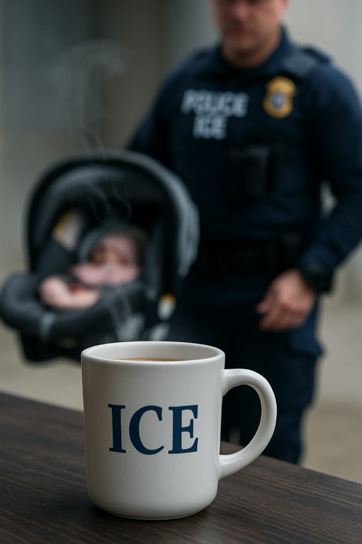 From ICE raids on toddlers to Trump selling access via cartoon money, America’s descent into farce accelerates with cruelty, corruption, and Peter Thiel’s fingerprints all over it.