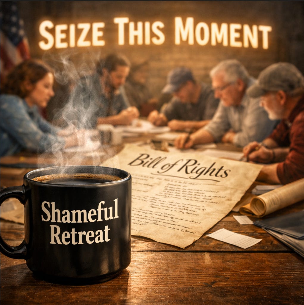 That, ultimately, is how to take advantage of Trump at his weakest. Not by merely mocking him, though heaven knows he makes it easy. Not by staging resistance as a form of national group therapy. But by identifying peaceful tools that create pressure and tying them to clear democratic goals that the public can understand, measure, and rally around. Protest. Boycott. Strike where possible. Refuse normalization. Force defections. Demand accountability. Build institutions that can outlast the man. Name the concessions. Name the reforms. Name the future. In earlier posts, I’ve offered a draft framework for a new Bill of Rights as one possible starting place for that conversation, a way to think seriously about what must be protected, reaffirmed, and newly recognized if democracy is to survive this era. That framework is in the archives, and if it would help move this discussion forward, I’m happy to repost it simply as a conversation starter.