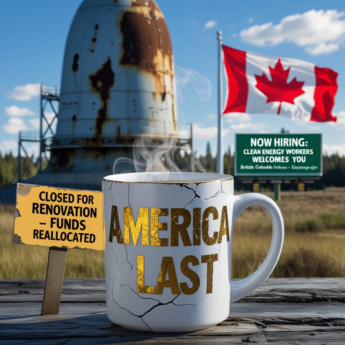 While Trump guts nuclear safety to fund his vanity jet and alienates allies from Canada to Taiwan, the world moves on and America gets left behind.