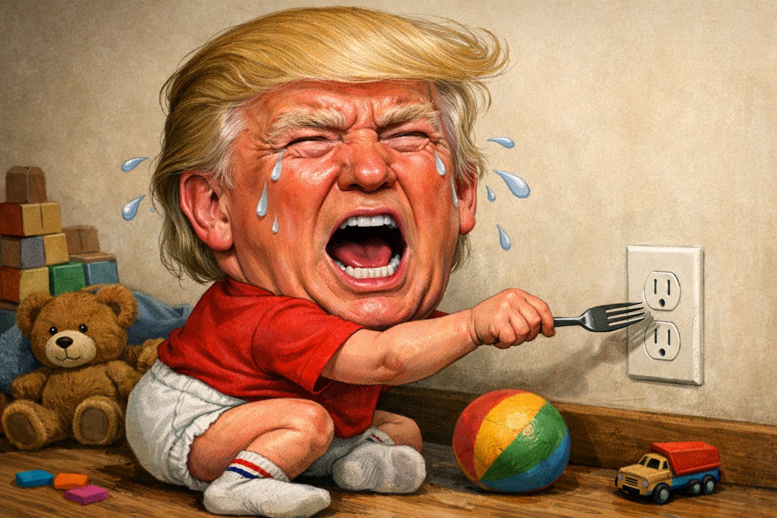 That is why the toddler comparison fits so snugly. This is not merely anger. It is that peculiarly infantile form of anger that erupts when someone is told no for an excellent reason and then decides the real crime is not the bad idea but the refusal to indulge it. He was told this was dangerous. He was told allies had legal and strategic reservations. He was told diplomacy remained the better route. He barreled ahead anyway and now wants to stand in the middle of the mess, lower lip trembling, and demand to know why nobody helped him make it bigger.