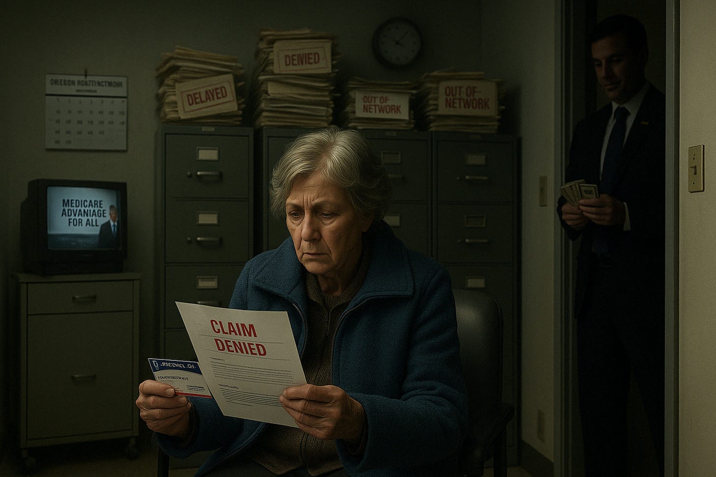 UnitedHealth controls 27% of Oregon’s Medicare Advantage market, making it the top player in the state. On paper, it offers enrollees enticing extras, dental, vision, gym memberships. In practice, those perks come wrapped in narrow networks, denied treatments, prior authorizations, and bureaucratic runarounds that wear patients down until they give up or go without. Jenn Coffey’s experience, being locked out of a cancer clinic she’d used for years, isn’t an exception. It’s the model. A model designed to extract value not by improving care, but by denying it.