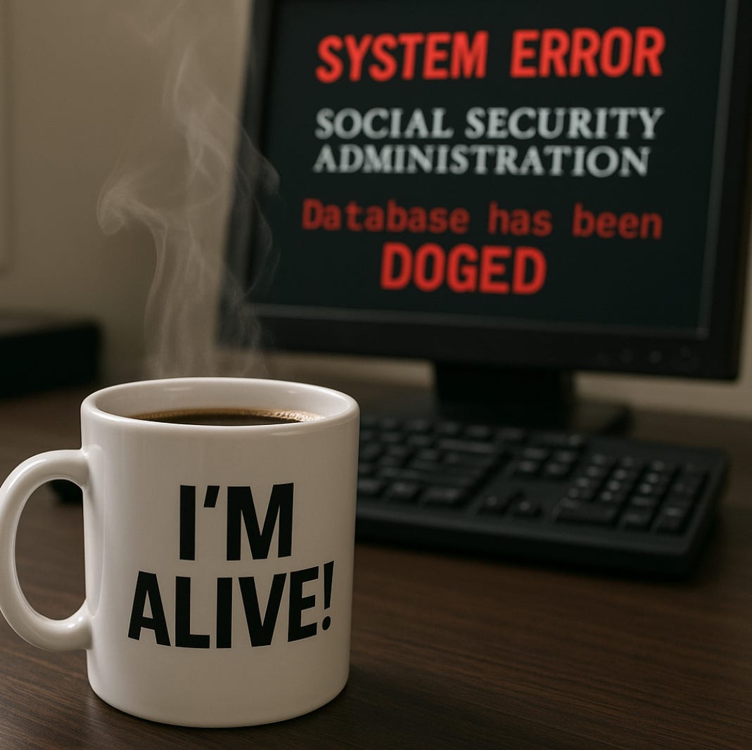 At the Social Security Administration, things have gotten so efficient that the agency can no longer tell who’s alive. Offices across the country are reporting an uptick in “resurrections”, real human beings walking in to find they’ve been declared dead by a broken database. It's not just an existential crisis; it’s a financial one. When SSA marks you as dead, your bank account freezes, your health insurance vanishes, and your job prospects go up in smoke. The purge, we now know, was orchestrated under DOGE’s direction, part of Elon Musk’s bold vision to modernize government by firing everyone and hoping for the best. More than 7,000 SSA employees have been let go. Thousands of Social Security numbers belonging to immigrants have been purged entirely. When KFF Health News asked the agency for comment, officials passed the buck to the White House, where a spokesperson cited Trump’s “resounding mandate” to make government more efficient. Efficient, apparently, at ending lives on paper, for now.