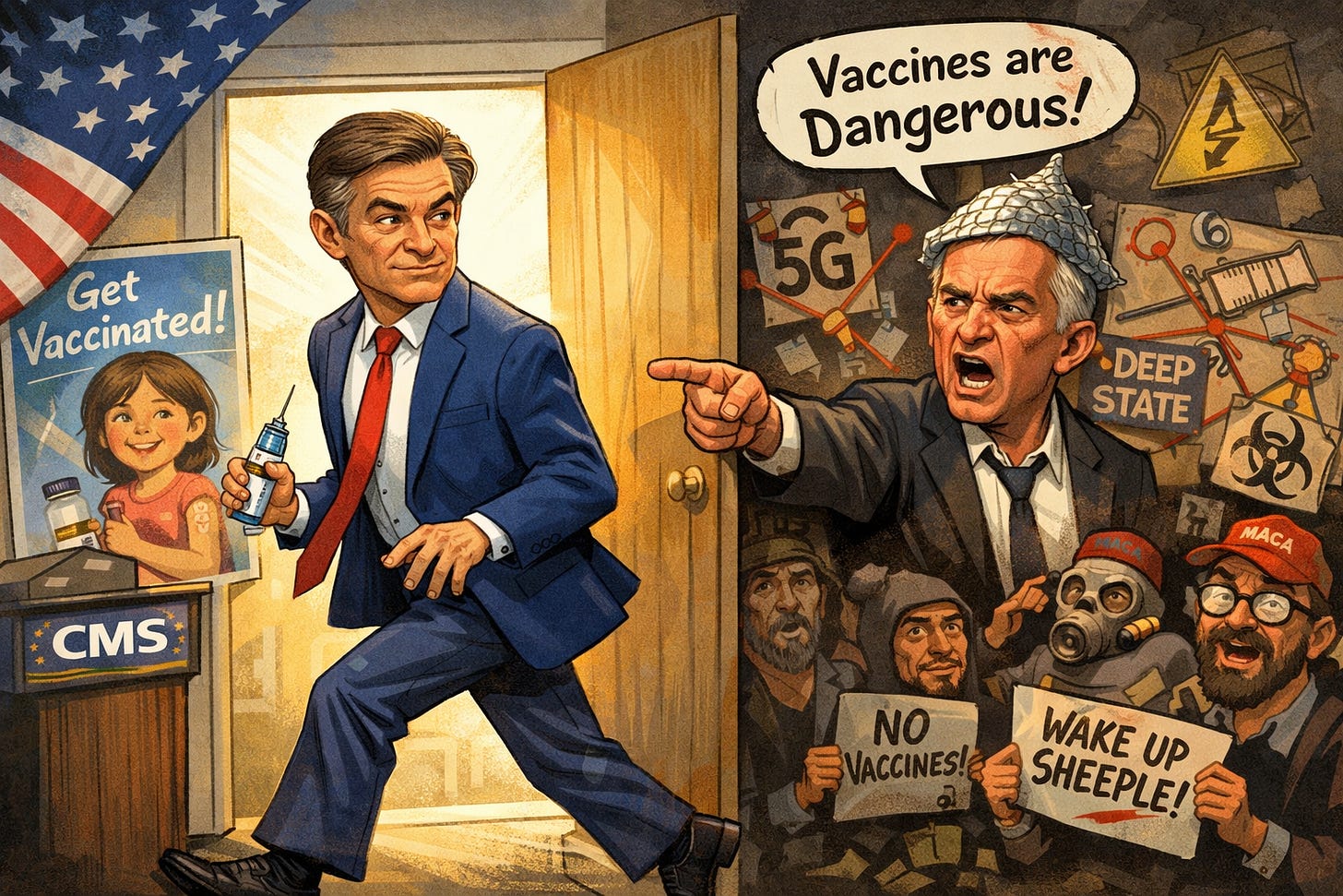 In a normal country, this wouldn’t be newsworthy. A health official would urge vaccination during an outbreak, the way meteorologists urge you not to drive into a hurricane. There would be public campaigns. There would be messaging. There would be coordination. There would be the basic machinery of state capacity humming in the background. Instead, we have a moment where the CMS administrator makes a plea on cable news, and everyone scrambles to interpret it like Kremlinology. Is he with him? Is he against him? Is this a sign of fracture?