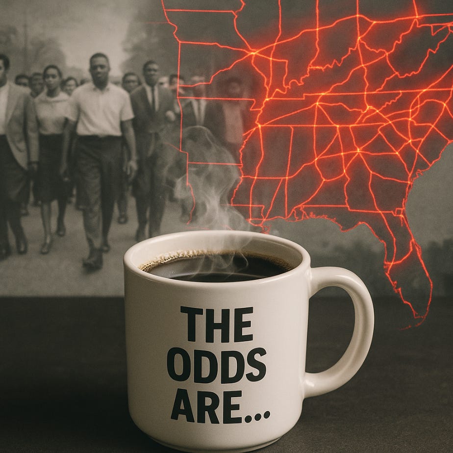 LaTosha Brown of Black Voters Matter warned that such a ruling would “clear the path for a one-party system where power serves the powerful and silences the people.” The South would see its remaining Democrats vanish like humidity after a storm, Alabama, Mississippi, Tennessee, South Carolina, all bleached clean of opposition. Historians have a word for this kind of “race-neutral redistricting.” It’s spelled J-I-M C-R-O-W, but now it comes with GIS software and an algorithmic smile.