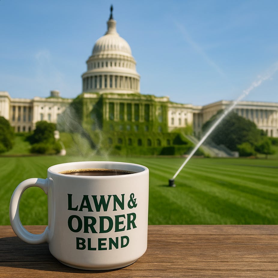 The absurdity writes itself. Side by side with actual footage of a U.S. commander prepping troops for combat in Afghanistan, Trump’s “tough guy” act collapses into parody. One minute, a general is urging troops to “breathe fire.” The next, Trump is boasting about grass. “Grass has a life,” he declared, promising to re-sod D.C. parks like they were fairways at Mar-a-Lago. The supposed commander-in-chief has boiled down his vision for the capital to sprinkler systems and Augusta turf.