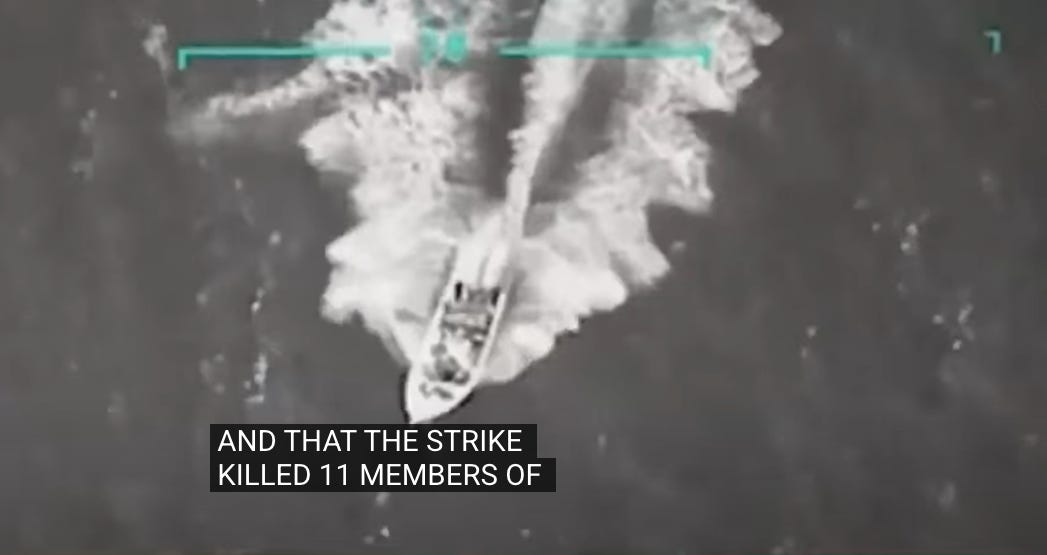They blew up a boat and called it justice. Eleven people vanished beneath Caribbean water, and the Trump administration’s only burden of proof was a label: “terrorists.” Not identified by name, not caught with contraband, not even apprehended like ordinary suspects, just vaporized and retrofitted with a storyline later. The Pentagon got its clip, the White House got its Chyron, and we got yet another grim reminder that if you shout “narco-terrorist” loudly enough, the law becomes a fog machine.