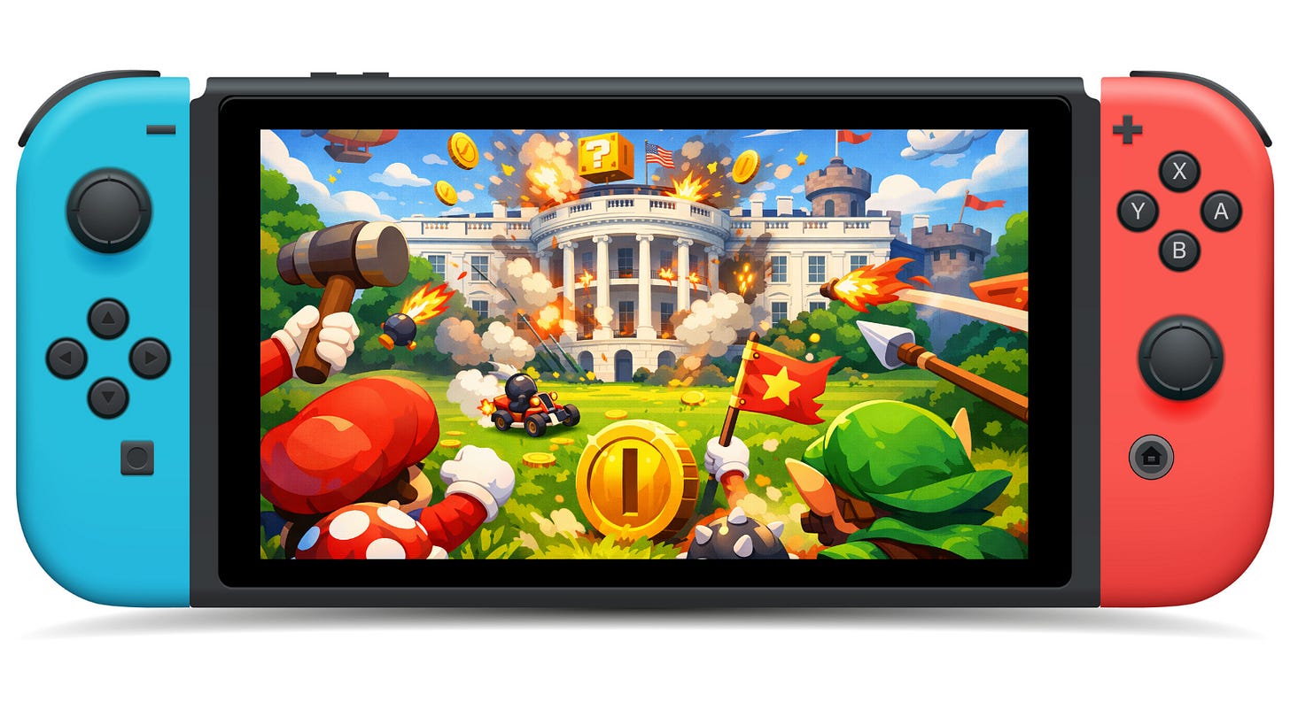 And I do think we should pause to appreciate how rare it is for a corporation to look this much like its own IP. Usually companies are boring. Usually they make couplers or cloud software or things with names like Applied Infrastructure Global Holdings. Nintendo, by contrast, sounds like it should resolve every dispute by jumping on it three times. So there is something almost moving about seeing the company’s real-world posture align so perfectly with its cultural brand. It was taxed on imported goods, the courts said that specific tariff authority did not hold, and now it wants restitution. Of course it does. Mario did not spend decades risking blunt-force head trauma against sentient bricks just so some emergency-powers tariff experiment could siphon off the proceeds.