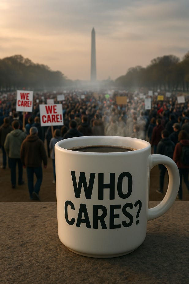 As millions prepare to march, Trump shrugs, the media dozes, and democracy wonders if polite protest is still enough. The next phase may have to make ignoring us impossible.