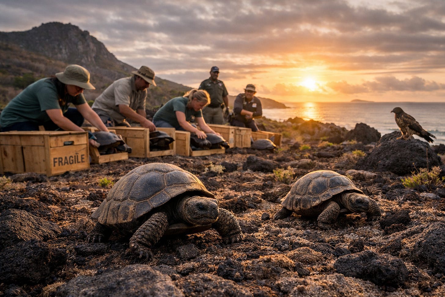 This is where I confess something, because it matters to the emotional geometry of the moment: when you watch humans bring something back, you realize how rarely we see repair up close. We see outrage, we see spectacle, we see the sharp dopamine spikes of conflict, but repair is quieter. Repair is incremental. Repair is the decision to keep going when there is no applause, and the Galápagos tortoises are a living rebuke to our addicted attention spans, a reminder that the future can still be built by people willing to work at the tempo of living systems.