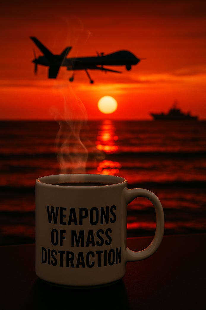 If you listen closely to the brass, the retired generals who still have a conscience left, you’ll hear the real story. The operation, they say, has nothing to do with narcotics and everything to do with oil. Venezuela’s oil. It’s déjà vu for anyone old enough to remember the weapons of mass distraction era, when a White House cried “WMDs” as cover for liberating all that oil conveniently trapped under Iraqi sand. This time, it’s “cartel boats” instead of chemical weapons, but the plot twist is the same: seize the resources, wave the flag, and call it freedom. Because when you threaten to sanction half the planet’s petroleum, you’d better have a backup source ready, and lo and behold, Venezuela, poor, corrupt, and sitting atop the largest oil reserves on Earth, fits the bill. Why buy it when you can just “liberate” it?