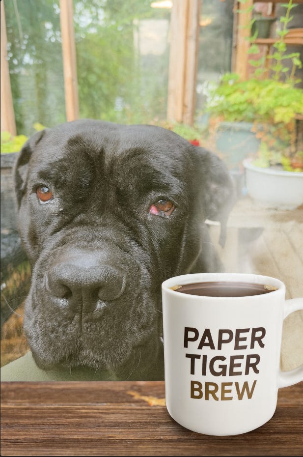 Marz refused to cooperate with yesterday’s planned photo shoot. Instead of presenting himself in all his Cane Corso magnificence, he insisted on tending to his doggo social media duties, sniffing, leg lifting, more sniffing. A cookie bribe in the sunroom produced the one semi-regal shot I could manage. Today I’m trading the chaos of geopolitics for a gentler mission: treating my very pregnant daughter to a mani-pedi and lunch. With any luck, a spicy dish might persuade my new grandson to make his debut.