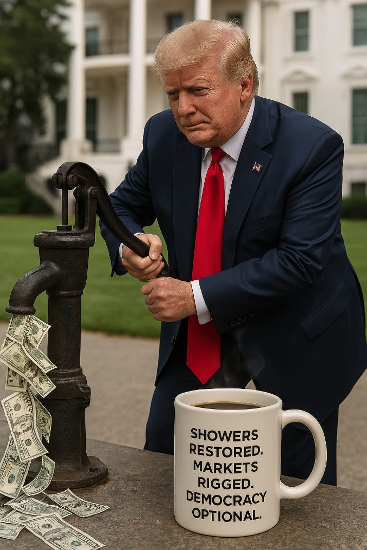This is your daily reminder: we’re not just watching the collapse of public trust, we’re watching billionaires speed-run kleptocracy while laughing in our faces.