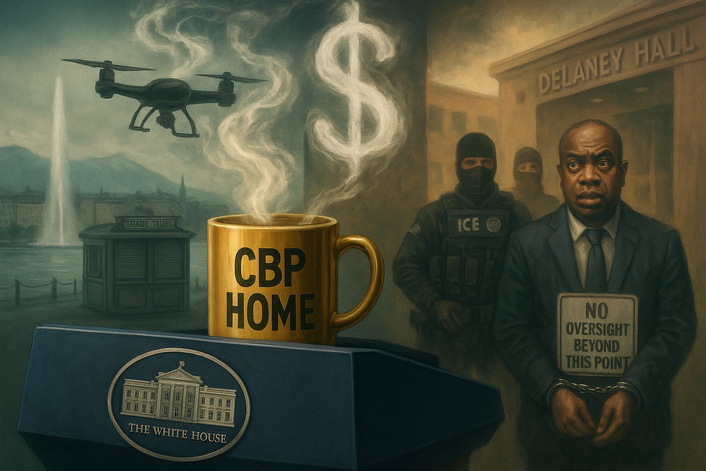 This brings us to the most Black Mirror-esque development of the week: Trump’s new “CBP Home” app, promoted in a government-funded ad that looks like it was rendered by a drunk AI and written by Stephen Miller on ketamine. In it, Trump announces the launch of the first-ever self-deportation program. Just show up at the airport, book your free flight, and we’ll even give you a thousand-dollar “exit bonus” on your way out. Think of it as “GoFundMe for fascism.”