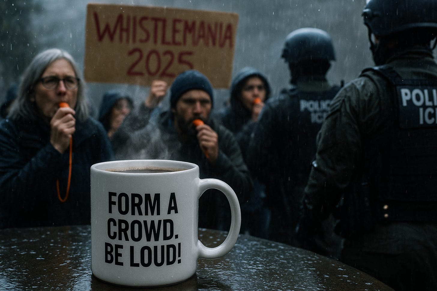 On October 29, they’ll host Whistlemania, an event to pack 100,000 whistle kits for anyone who might need to blow the alarm when ICE shows up. It’s democracy reimagined as a neighborhood watch, a chorus of defiance in a city where even street vendors now need sanctuary.