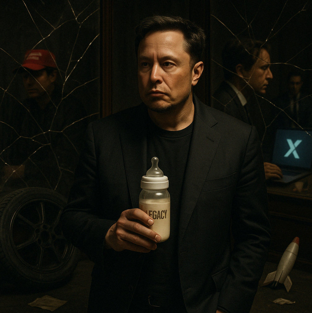 The myth has worked for a time. It helped him seduce investors, dazzle politicians, and surround himself with a cult of followers who think “being a genius” is just a matter of posting faster than the fact-checkers can keep up. But now, the genius mask is slipping. Because a real genius would not be caught frantically spinning plates while the empire starts to collapse.