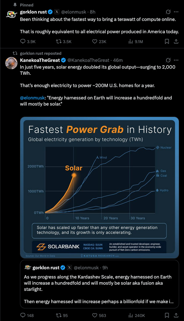 Elon Musk wants you to believe we’re on the brink of becoming a Kardashev Type I civilization, a species so advanced we’ll soon harness the total energy output of the Earth. He tweets about “billionfold” increases in solar output and calls fusion "just starlight." It sounds visionary, until you remember he’s the CEO of a car company that can’t sell its cars.