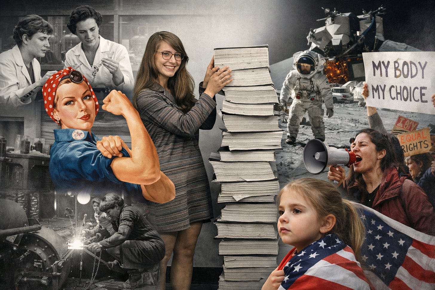 And that is why I refuse the whole project. I refuse the lie that women are more dignified when we are less free, that dependence is safety, and that family values require female submission. I refuse the lie that women’s independence is some elite modern indulgence rather than a proven public good. History remembers better than that, Rosie remembers. Margaret Hamilton, Katherine Johnson, Dorothy Vaughan, Mary Jackson, Pearl Kendrick and Grace Eldering all remember. The country we have is, in part, the country women built when we were allowed to work, think, invent, and act like full human beings.