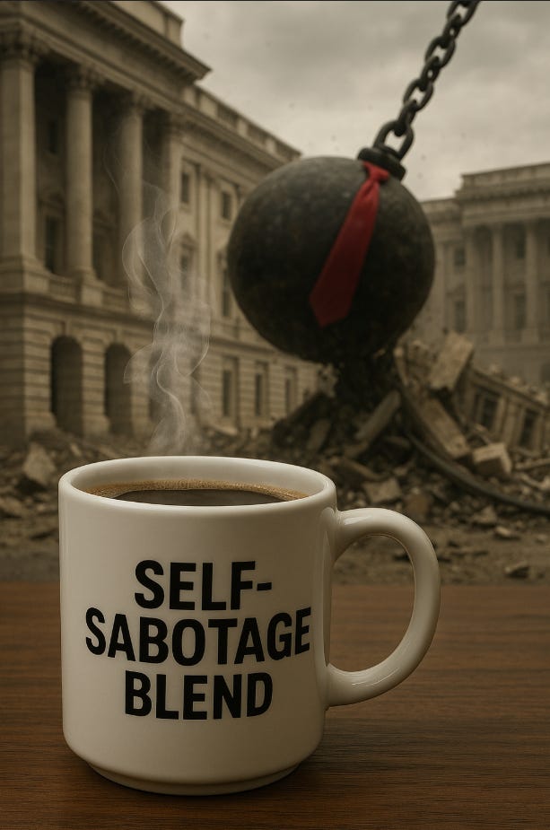 From soybeans to wildfires, from Kyiv to Gaza, from bankruptcies to boat parades, Trump’s America is a study in self-destruction. The farmers are broke, the firefighters are raided, the allies are abandoned, the kids are fed conspiracy theories, and the US Navy is reduced to a floating therapy session for one man’s ego.