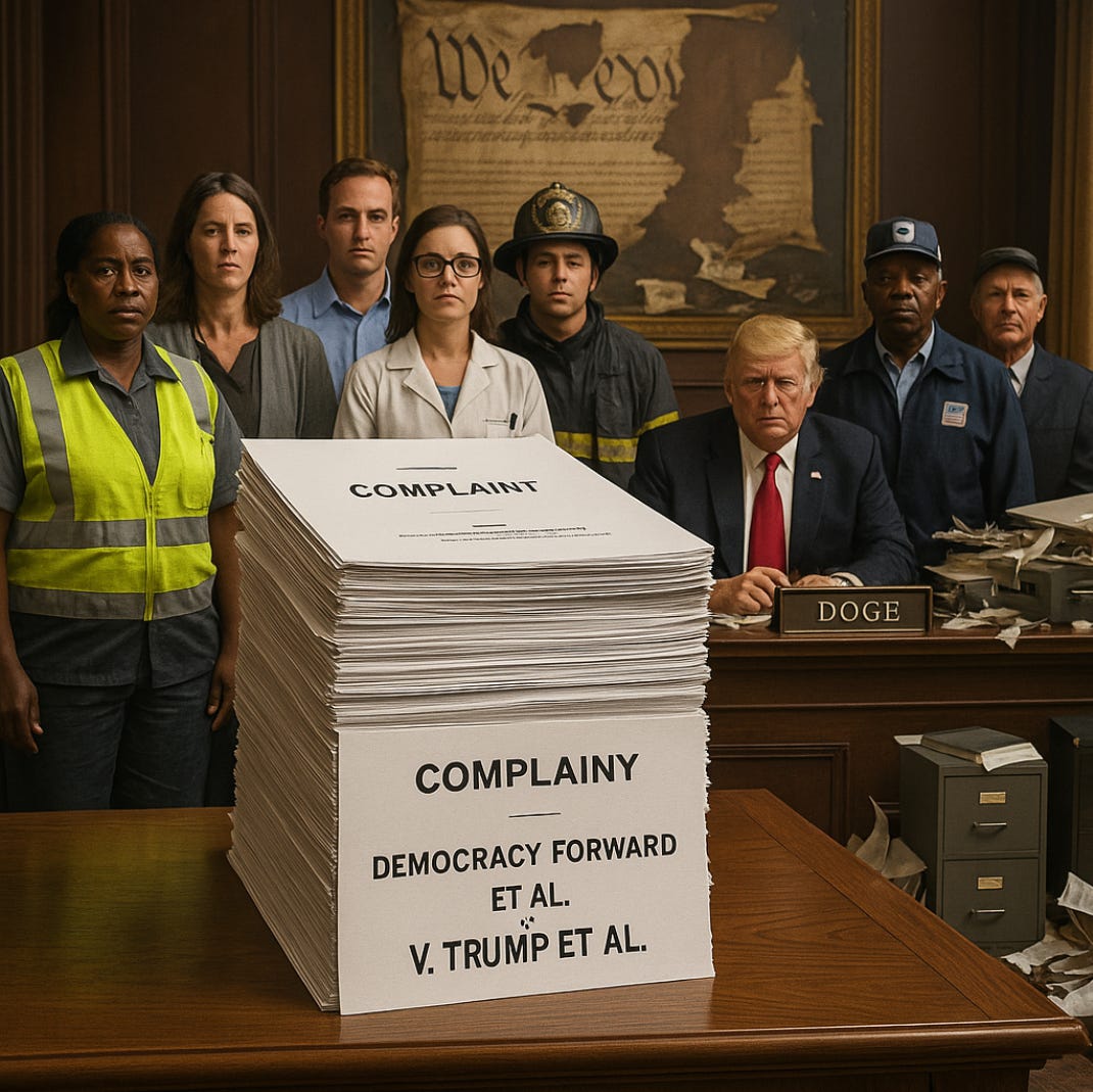From California to the SEIU, a coalition of plaintiffs has filed the legal equivalent of a bunker buster against DOGE.