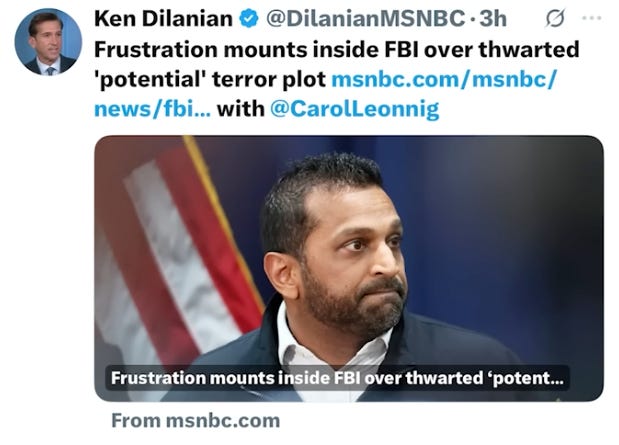 Seraphin had actually called his shot days earlier, writing that Patel would need to ‘announce a big international arrest to distract from his optics disaster.’ He even said it would come from an investigation that pre-dated Patel’s tenure. Within hours, CNN delivered exactly that, a ready-made headline about a thwarted ISIS-inspired plot, complete with a ‘Pumpkin Day’ flourish so absurd it could’ve been storyboarded. Patel got his distraction; the Bureau lost its credibility.