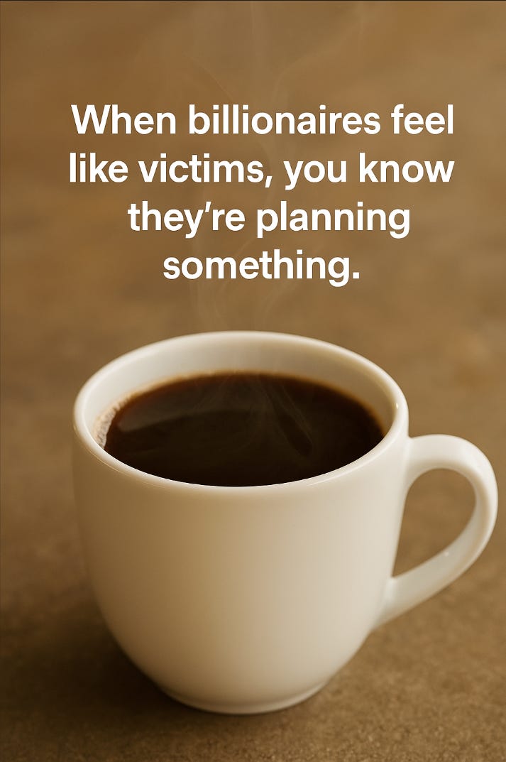 When billionaires feel like victims, you know they’re planning something.