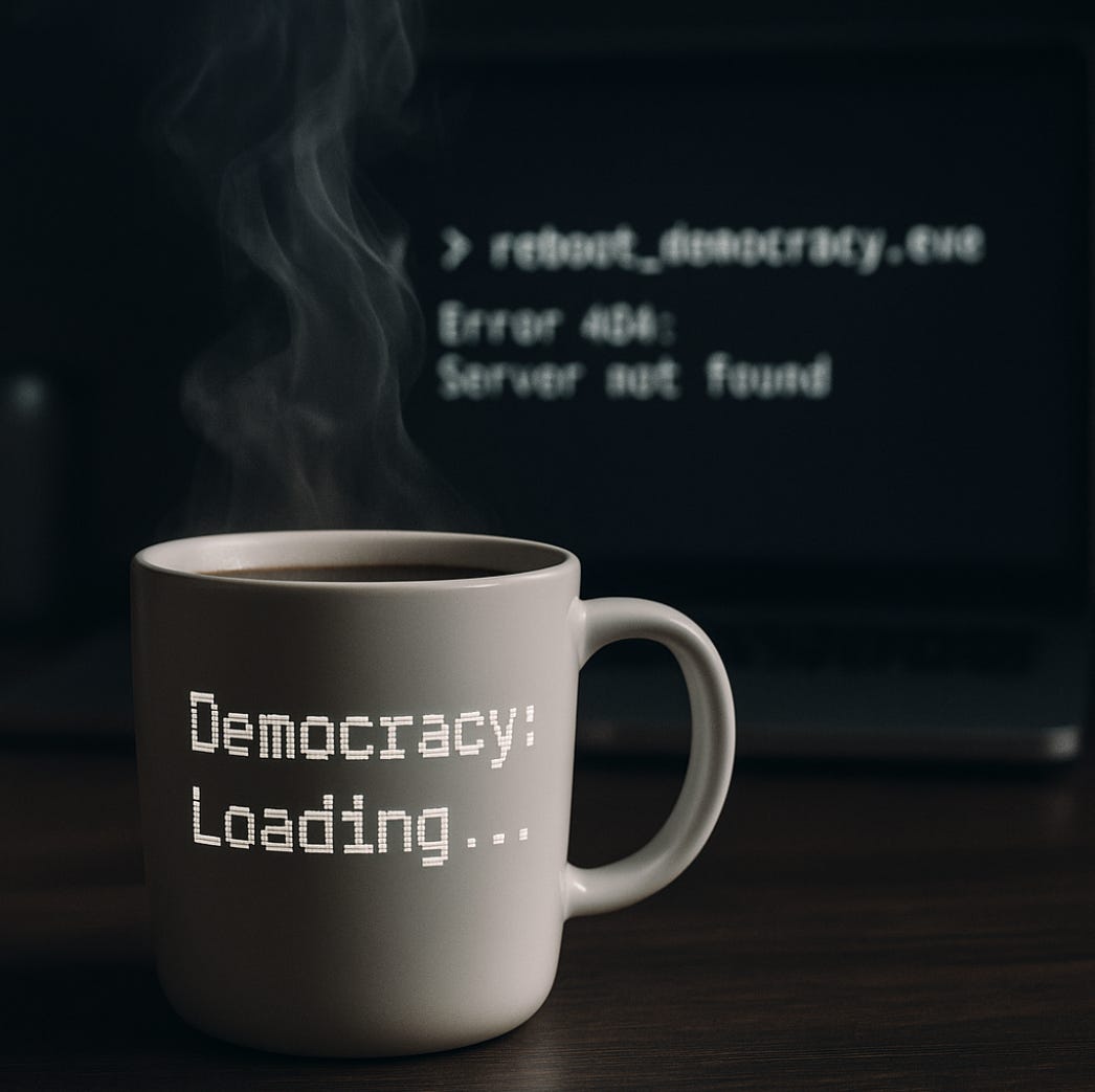 Sure, America’s safer, if you ignore the artillery overhead, the autocrat on the line, and the cloud server smoking in northern Virginia. The country may be teetering between two worlds, one analog, one algorithmic, but both seem to be running on fumes and hubris. Somewhere, democracy is still buffering.