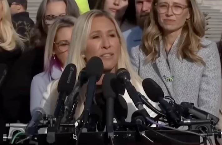 This isn’t really about Code Pink, or Joe’s Seafood, and it’s not even about Marjorie Taylor Greene, except as a convenient vessel. This is about Epstein, and the moment Greene stopped being useful to the silence machine.